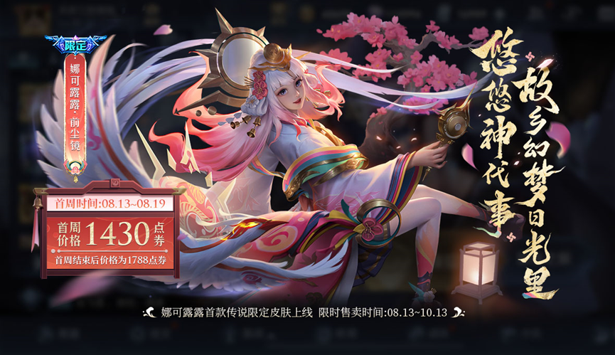 娜可露露的首款高级皮肤就是限定传说,前尘镜将在8月12日零点准时上架,原价1788点券,首周折扣1430点券,这次官方没有准备专属点券优惠卡,可能是考虑到了消耗点券返利活动吧。