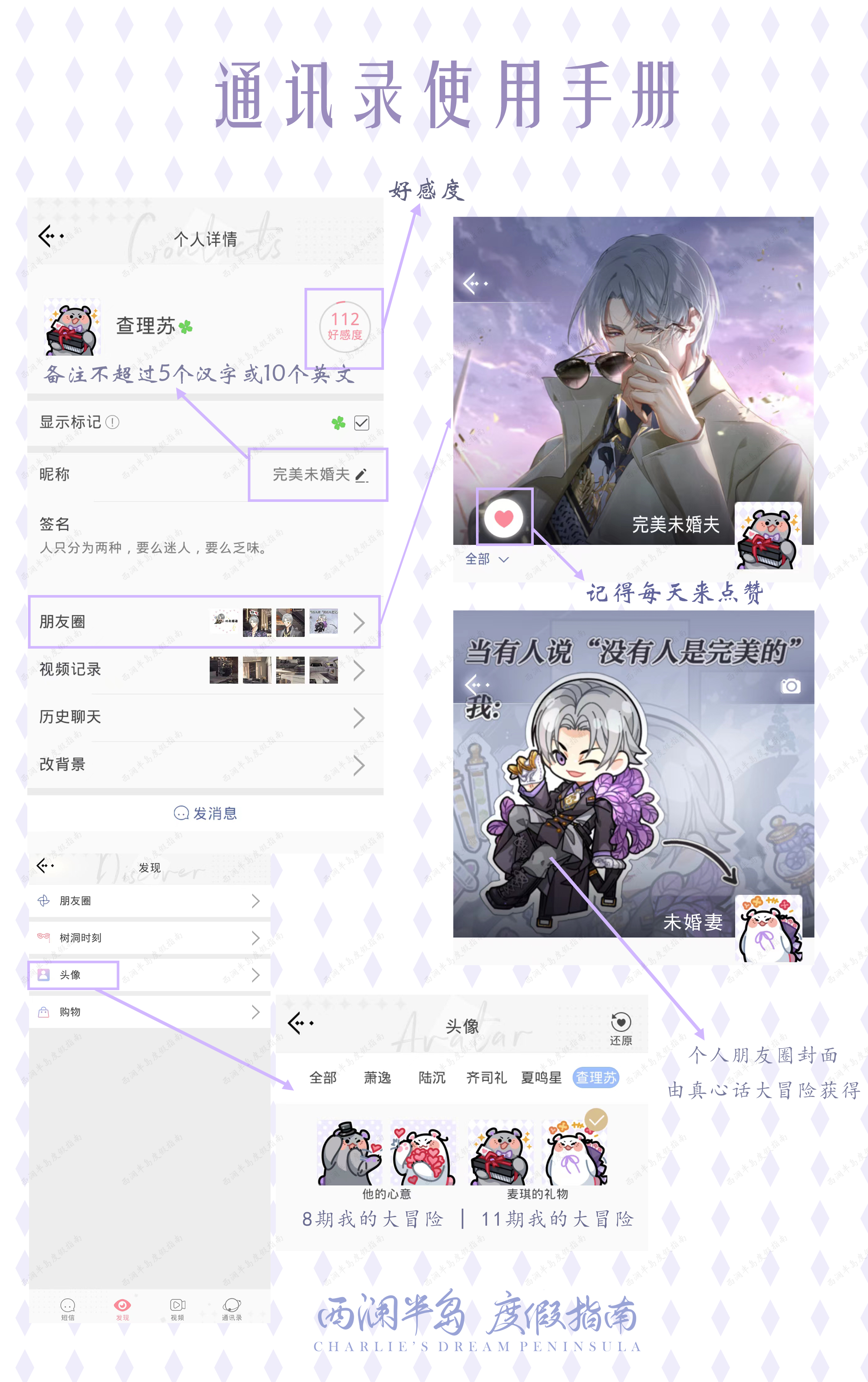 通关第六章后(查理苏在光结局),会收到短信“快递到了”,回复完成后,未婚夫就正式解锁通讯录啦。