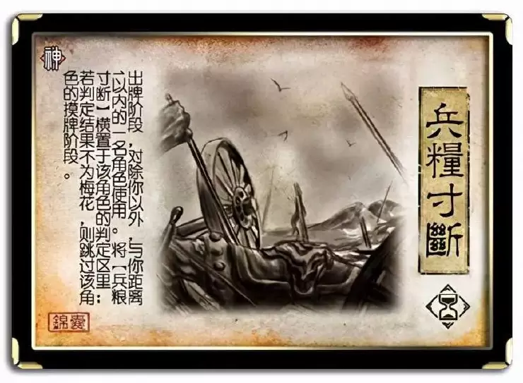 除了一般锦囊牌之外,三国杀中还有3张延时锦囊牌,其中【兵粮寸断】和【乐不思蜀】最为重要。这两张牌都是控制性卡牌,其作用各有特色,一个是让敌人不能摸牌,一个是不让敌人出牌。两个效果没有高低,根据情况而定。无论是哪个锦囊牌命中敌人,敌人都不会好受。