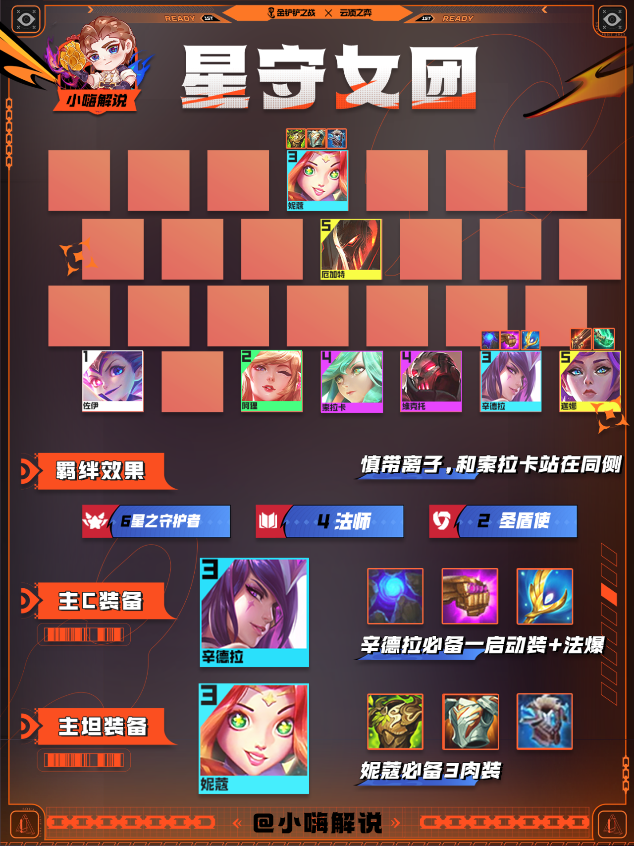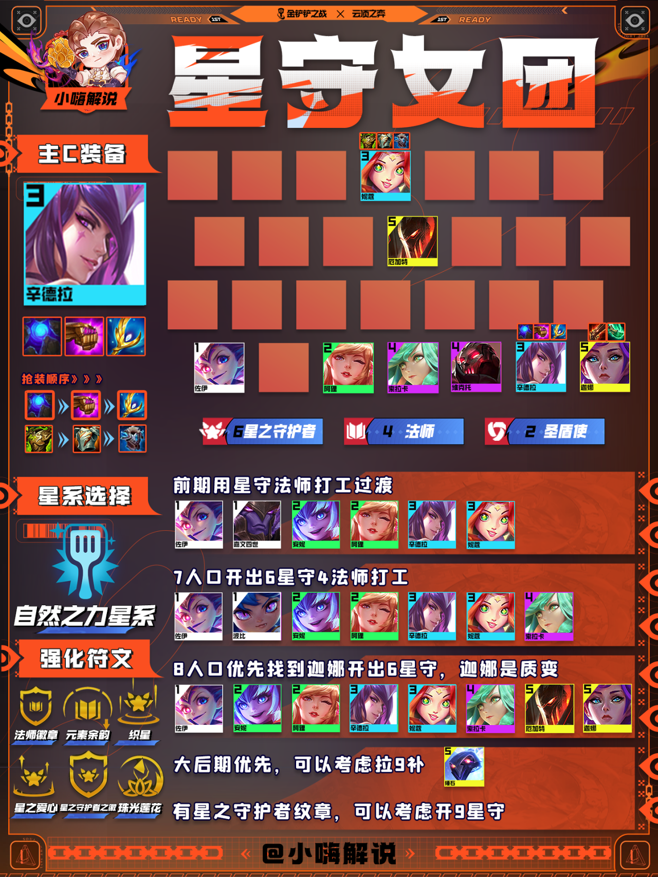 因此星之守护者+迦娜,是阵容启动的核心>7人口追3星辛德拉