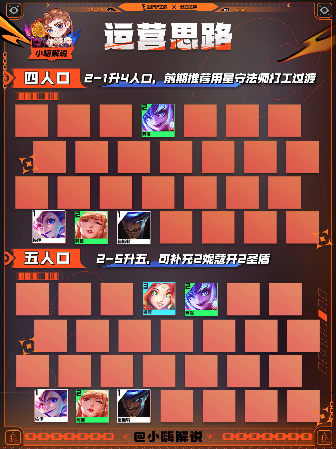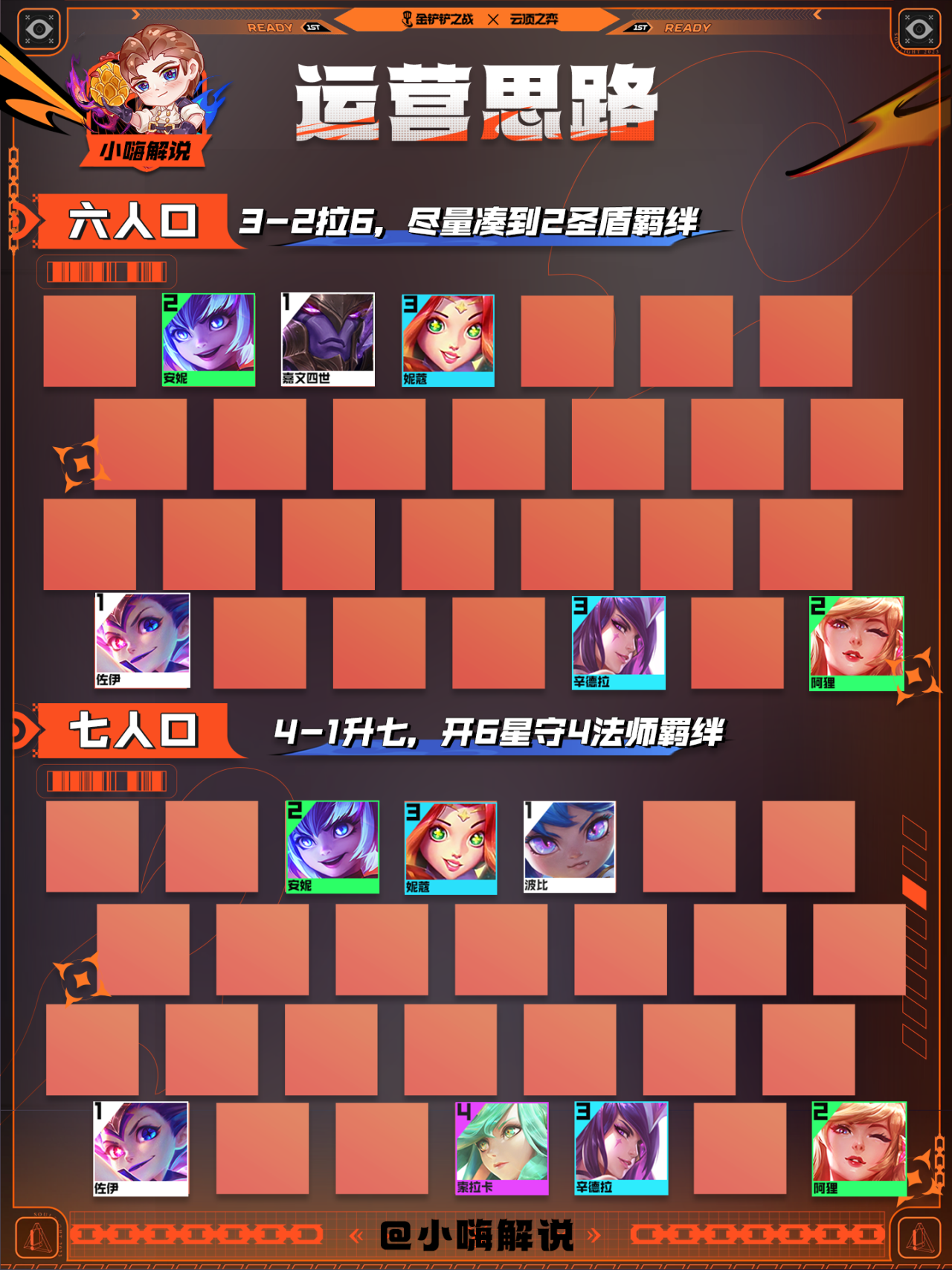 3-2拉6人口,4-1拉7人口,7人口是锁血的关键,这里优先找到6星守4法师羁绊