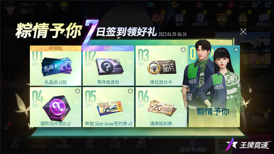 6月20日至26日,7日签到礼活动将限时升级,为车手们送上更丰厚的签到好礼——除了常规的礼品点、零件自选包、芯片包外,还有奔驰Sliver Arrow签约券和通用抵扣券,助你获取心仪的赛车,创造更为优异的成绩!