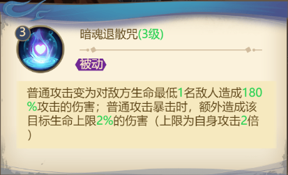 提升了唐僧的输出与残血制造能力,普攻暴击时额外造成目标2%最大生命值的伤害,在面对天界战场等玩法中的血牛boss时,这个效果会达到最大化。