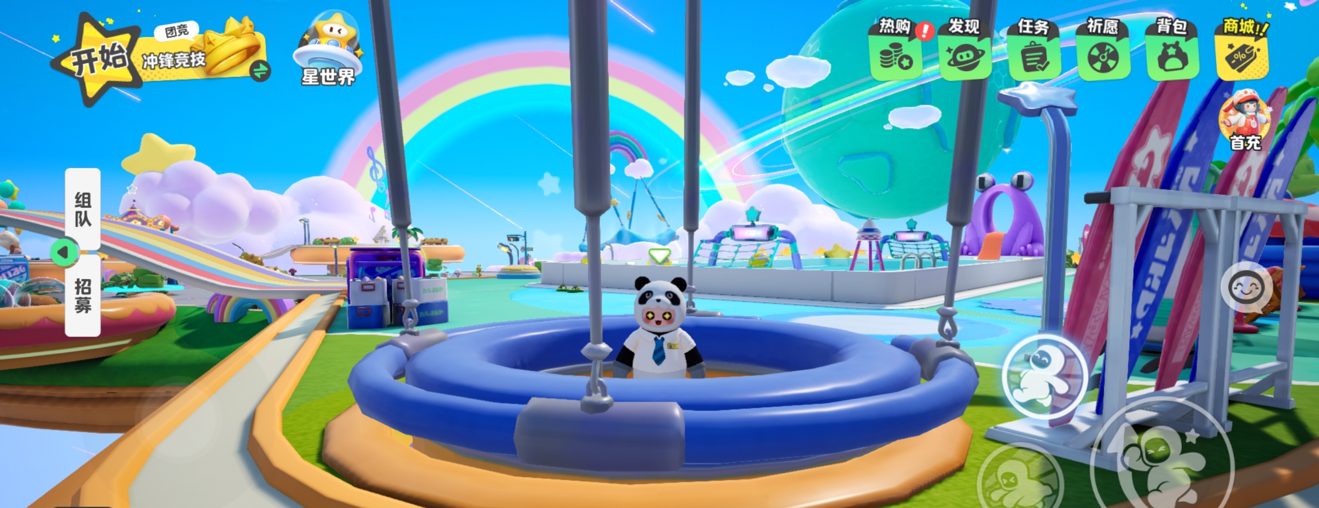 中心广场绝对是超开星乐园的核心区域。这里四处都有绿植环绕,周围还有彩虹作为装饰。一脚踏入广场,你的多巴胺就开始biubiu的分泌,“开星果”实锤了。