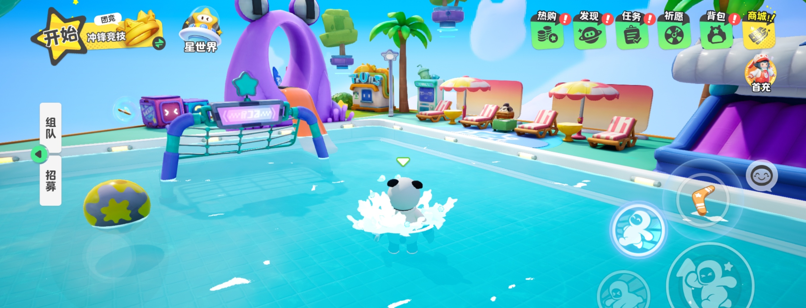 游泳池可是游乐嬉戏的好地方。你可以在这里与小伙伴来一场畅快的水球对决,也可以坐在岸边的躺椅上享受日光浴,累了就来清凉一下吧。