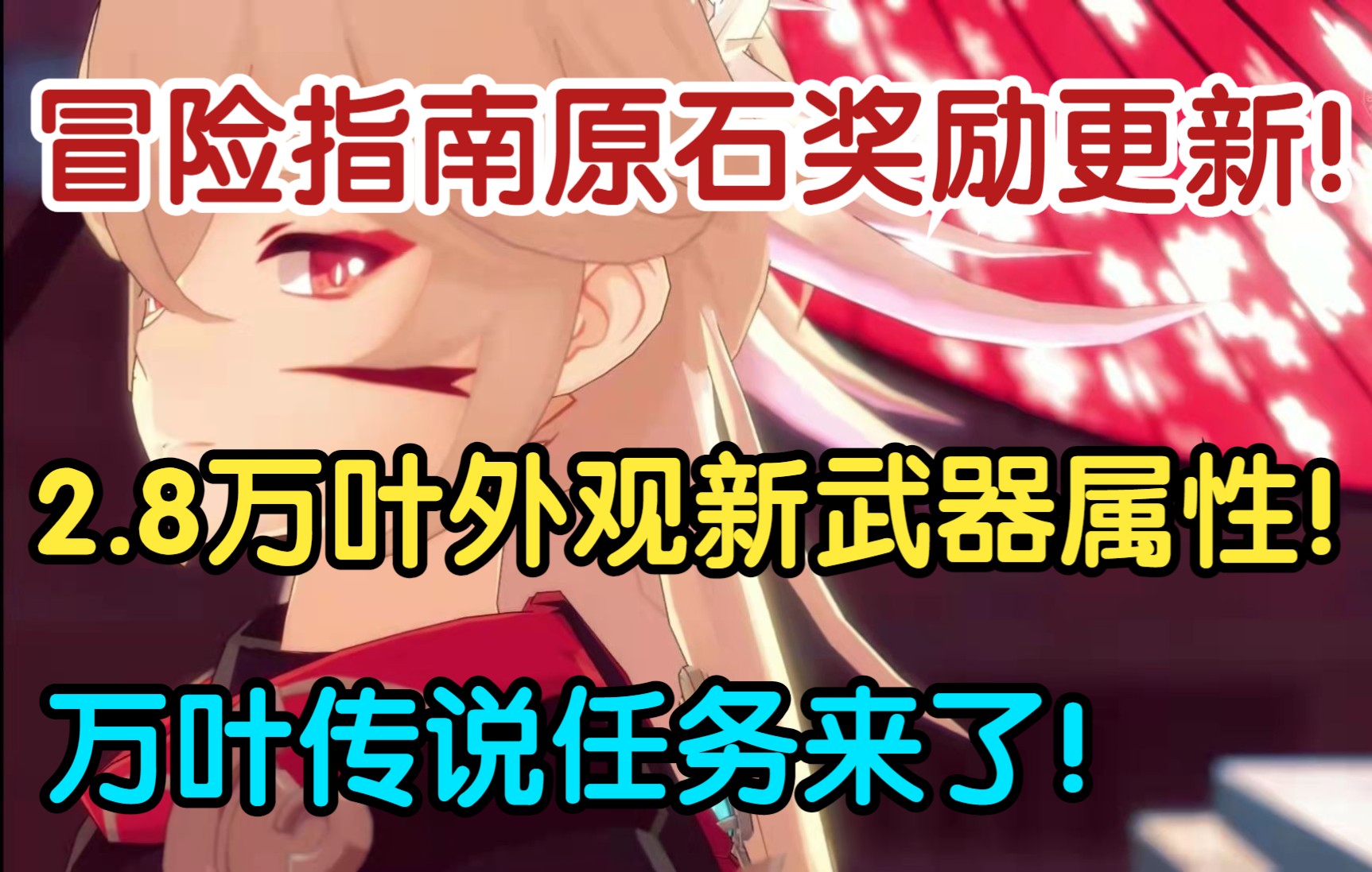 巨好消息!冒险指南奖励更新!2.8万叶外观毕业新武器属性!万叶传说任务来了!5月下旬消息vol.5