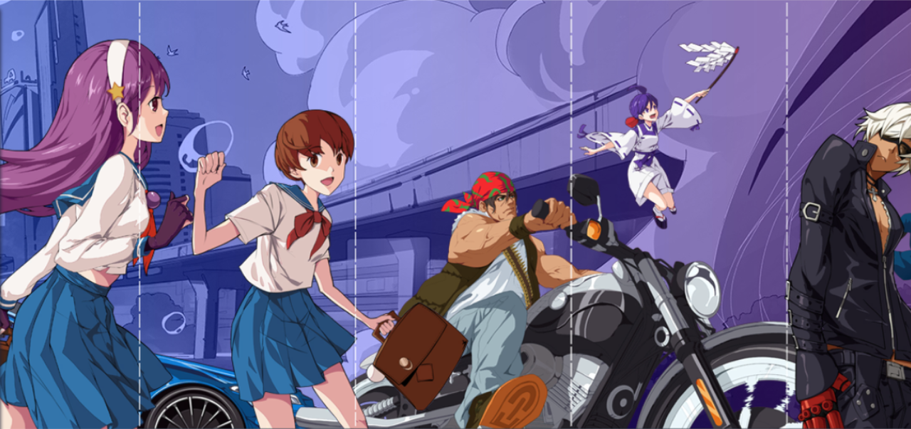 2、6V6,前排是莉姆露露、娜可露露、薇普,后排是草薙京、加尔福特、比利