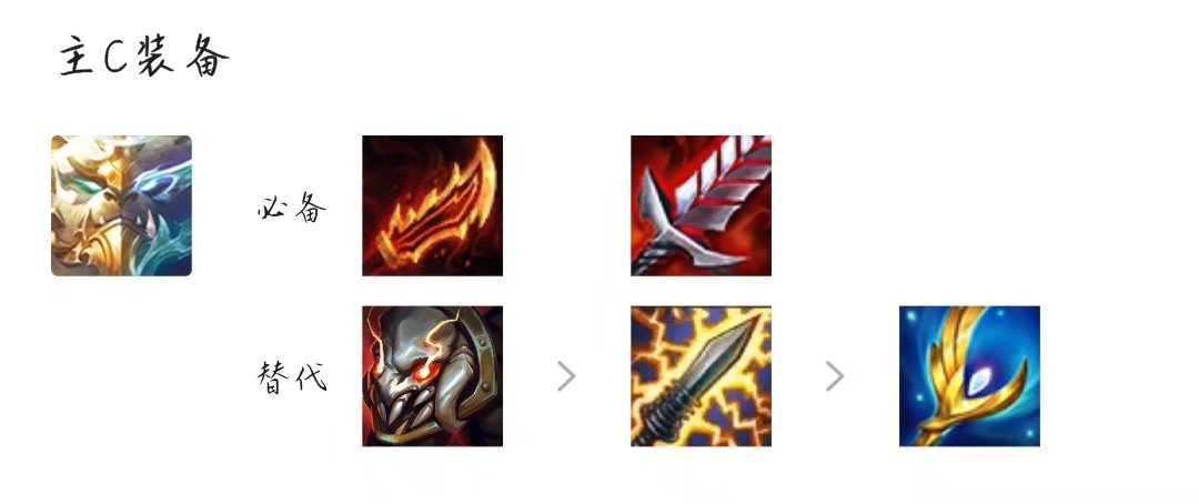 主C狗熊必备羊刀饮血,第三件给泰坦电刀或者大天使,羊刀的加攻速和饮血的回复不用多说,泰坦是为了狗熊在对局时可以增加双抗,使得自己能抗能打,电刀是为了削减敌人法抗,与狗熊本身技能相得益彰,大天使增加的是狗熊的闪电伤害,如果对面前排是什么土龙这种,大天使也是不错的选择。