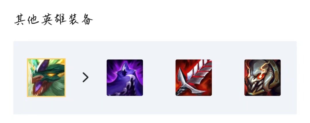 备选的万用瞄准镜可以让狗熊在提高攻速的同时,增加的攻击距离让狗熊小小的增加了生存能力。回复类的星界赐福和狩猎律动不用多说了,因为狗熊装备有饮血,所以有其他更好的海克斯可以放弃这类。最后还是一个神龙专属海克斯
