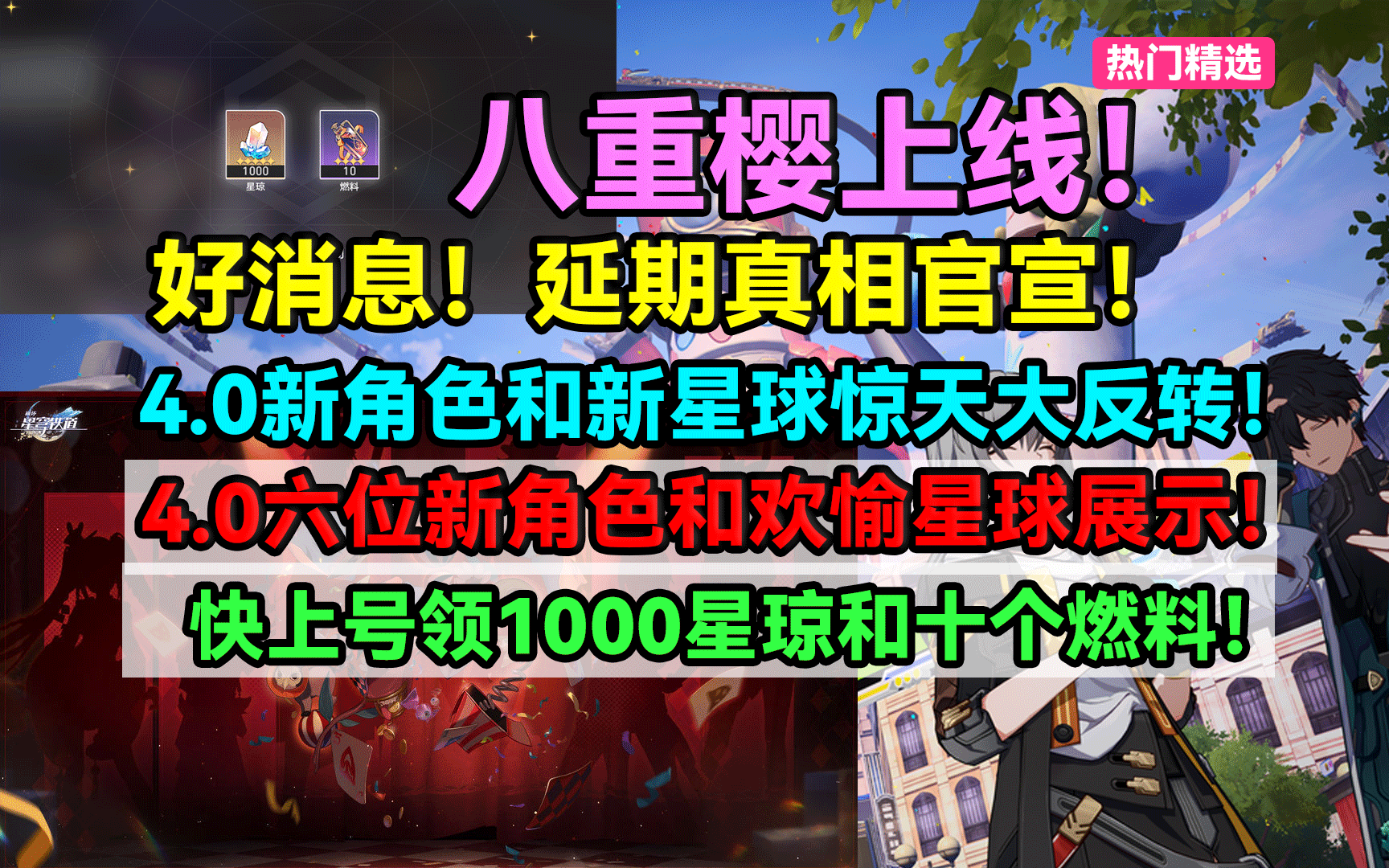 好消息!八重樱上线!延期真相官宣!4.0新角色和新星球惊天大反转!4.0六位新角色和欢愉星球展示!领1000星琼和十个燃料!二相乐园SP花火刃姬子【星穹铁道】#创作者计划#