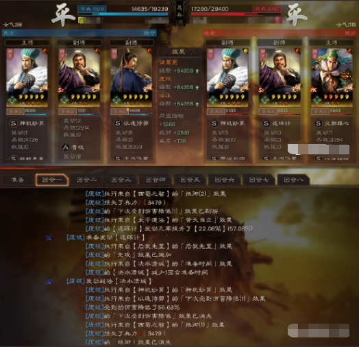 十分有意思的技能效果,禁用装备,能够减少20-40点属性,在攻防两端削弱敌军,并且破坏一些强势的装备效果,其次持续的伤害表现,也能够让庞统的伤害释放的更加自然,最后欧皇必备,如果能够首回合打出,配上45%的发动,欧皇之选,就此而来。
