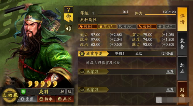 1、关羽的自带战法其实非常的强,146%的全体兵刃伤害,50%概率缴械OR技穷,并且独立判定1回合。
