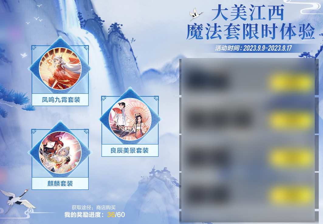 大美江西,魔法套装限时体验!9月9日-9月17日,车手们登录游戏并完成指定任务,即可获得魔法套装随心礼盒,打开可随机获得期限的麒麟魔法套装、凤鸣九霄魔法套装、良辰美景魔法套装其一~