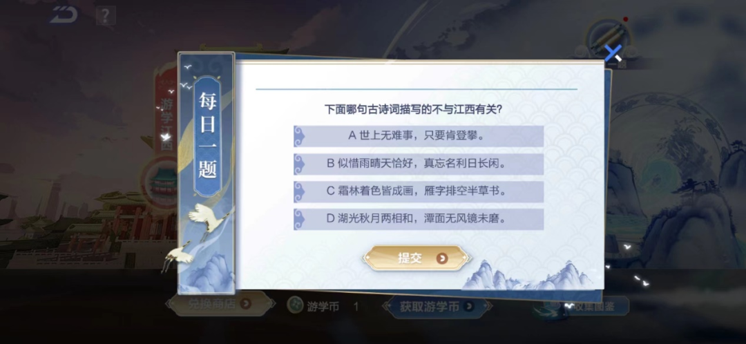 车手们每日还可以回答有关江西的趣味问题,一起学习江西的有关知识!无论正确与否都可以获取小橘子为车手们准备的点券奖励哦~