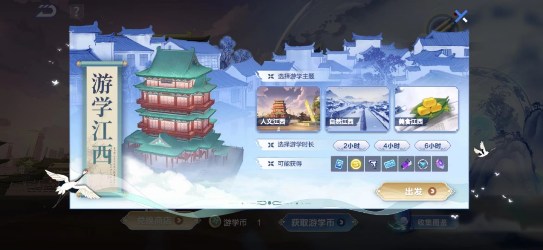即日起-9月20日,车手们进入游学江西活动主站,可以选择主题和时间,派小橘子出发游学,通过游学可获得科技点、点券、道具等奖励,还可以获得游学江西纪念明信片,收集明信片可获得丰厚游学币和奖励~ 注意:各主题游学每满12小时必得明信片一张哦~