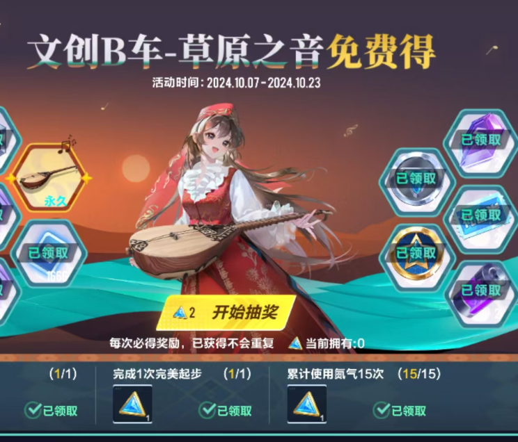 奖励:永久套装牧野悠然、宠物瓜萌萌、限定称号飞驰新疆等好礼