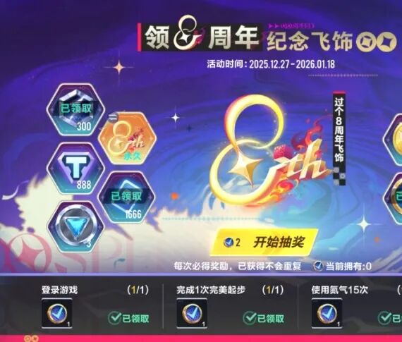 奖励:过个8周年飞饰等