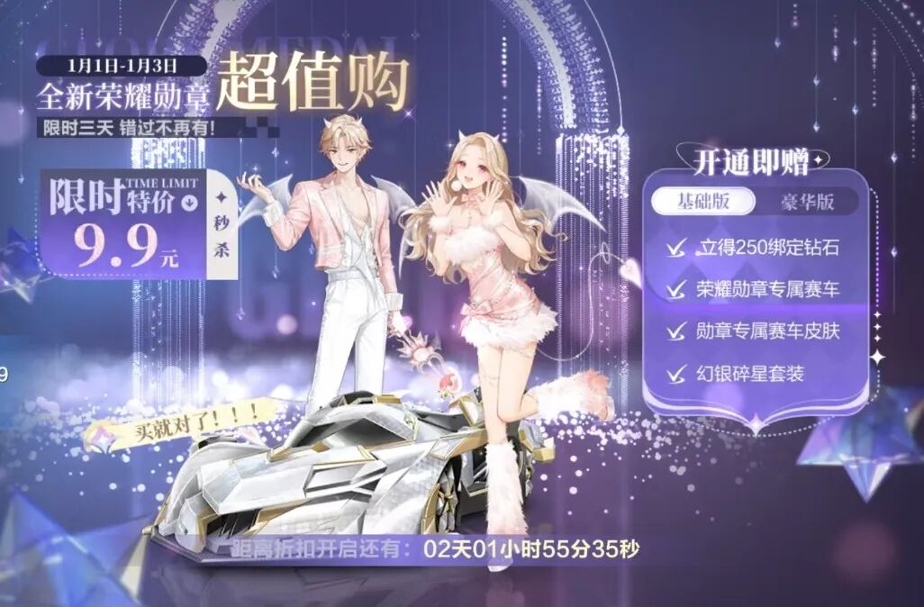 1月1日-1月3日,第36期荣耀勋章限时开通仅需9.9元!特价仅售3天!车手们仅需花费9.9元即可激活基础版荣耀勋章,再加43元即可升级为豪华版~
