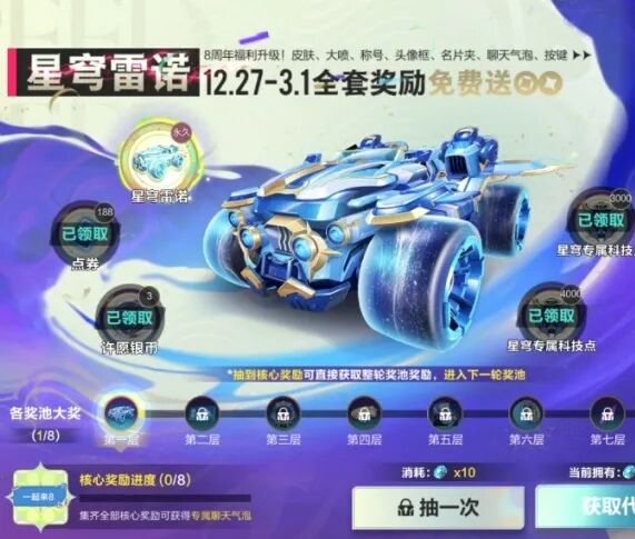 奖励:A车星穹雷诺及同主题赛车皮肤、大喷等