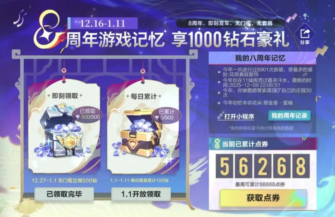 开启8周年回忆 赢海量点券&钻石