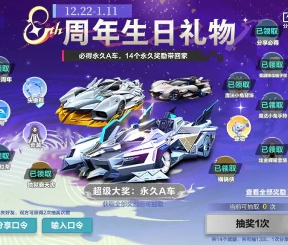 八周年礼物 14个永久奖励免费得