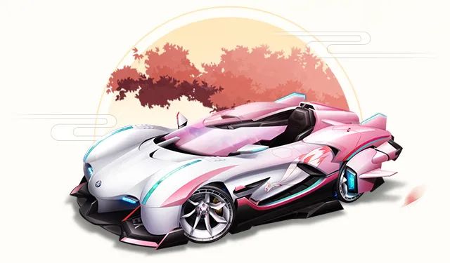 以涂山红红为灵感设计出的赛车皮肤指挥官 涂山红红,粉白渐变配色还原了红红服饰的颜色。