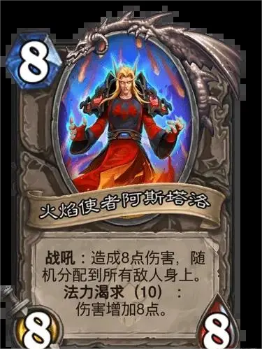 而这个第三阶段的火焰使者版本阿斯塔洛更是让我想起了古神版本的克苏恩还不用养,还只用8费。不过...设计师?你这个8费是不是故意不让跟铜须配合啊,但有一说一这样一搞岂不是铜须阿斯塔洛就变成牛牛古夫的专属了?!那种事情不要啊!o(>﹏<)o你是真的会搞人心态。