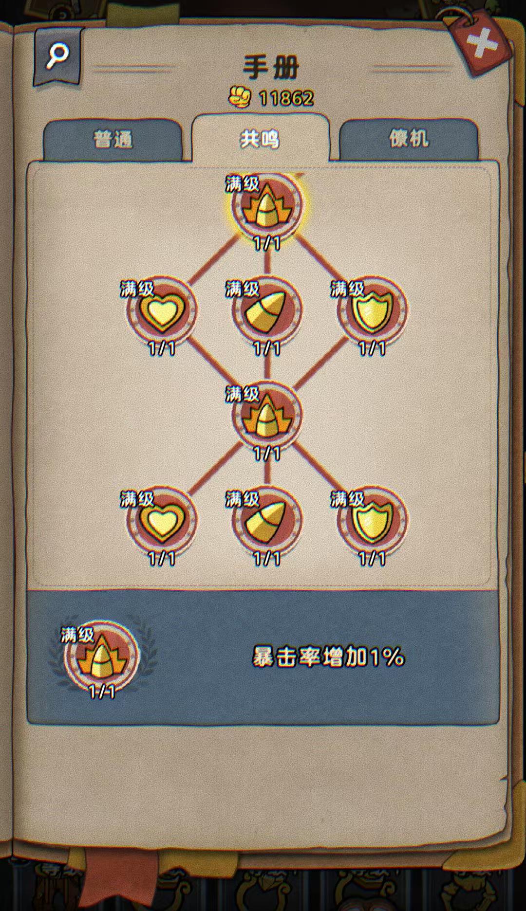 共鸣手册: 专注于核心战斗属性的百分比提升!主要强化攻击力、生命值、防御力、暴击率这四大金刚,简单直接地拔高你的输出和生存。