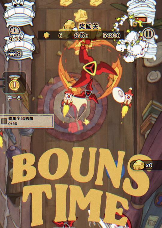 BONUS TIME 奶酪奖励关:惊喜隐藏奖励关卡!无需战斗,只需灵活操控收集奶酪即可轻松过关!