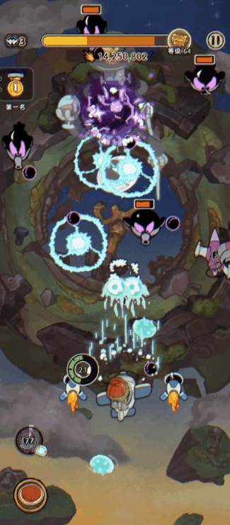 3.克洛诺斯召唤数个围绕自身旋转的黑色小型梦魇,先吐出大量圆形子弹,最后一起撞向飞行员;