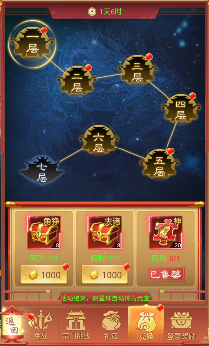 4.摘星珠可在兑换里面兑换大奖,活动结束摘星珠自动转为元宝。