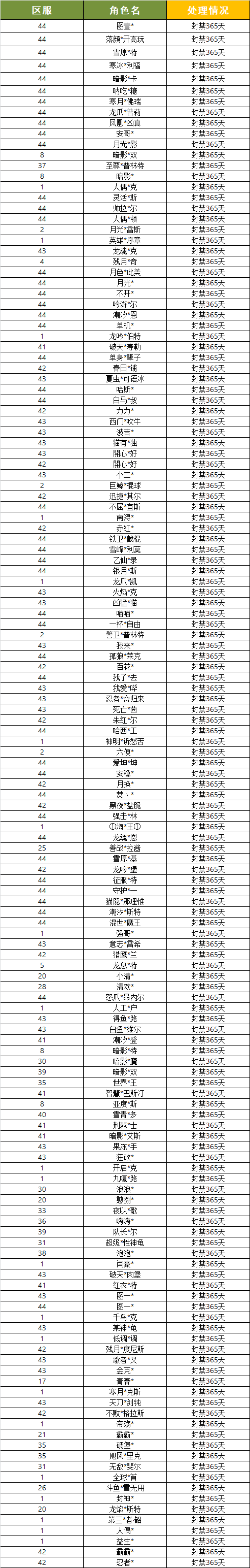 以下为开服以来经过核查后违规用户封禁名单公示: