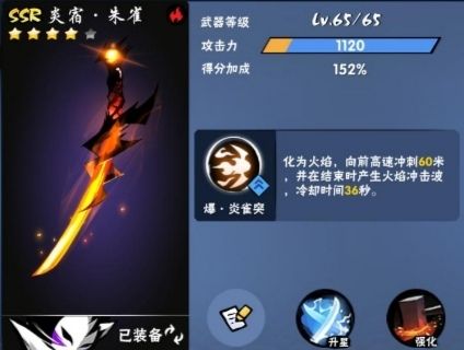 【炎宿-朱雀】〔必备武器。功能性高〕直线前进,在屏幕右端停留,然后清屏。常搭配“真-棱玉弓”或“璇雷一文字”打满。[伤害系数] 打式神、蚊子6.7,一般boss7.7,龙、尾焰打满9[CD] 零阶36s,五阶33.5