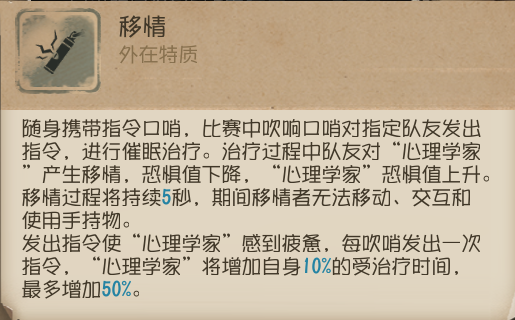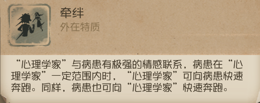 “心理学家”虽然没有出色的牵制能力,但【外在特质-移情】可以为求生者阵营带来很多的可能性。