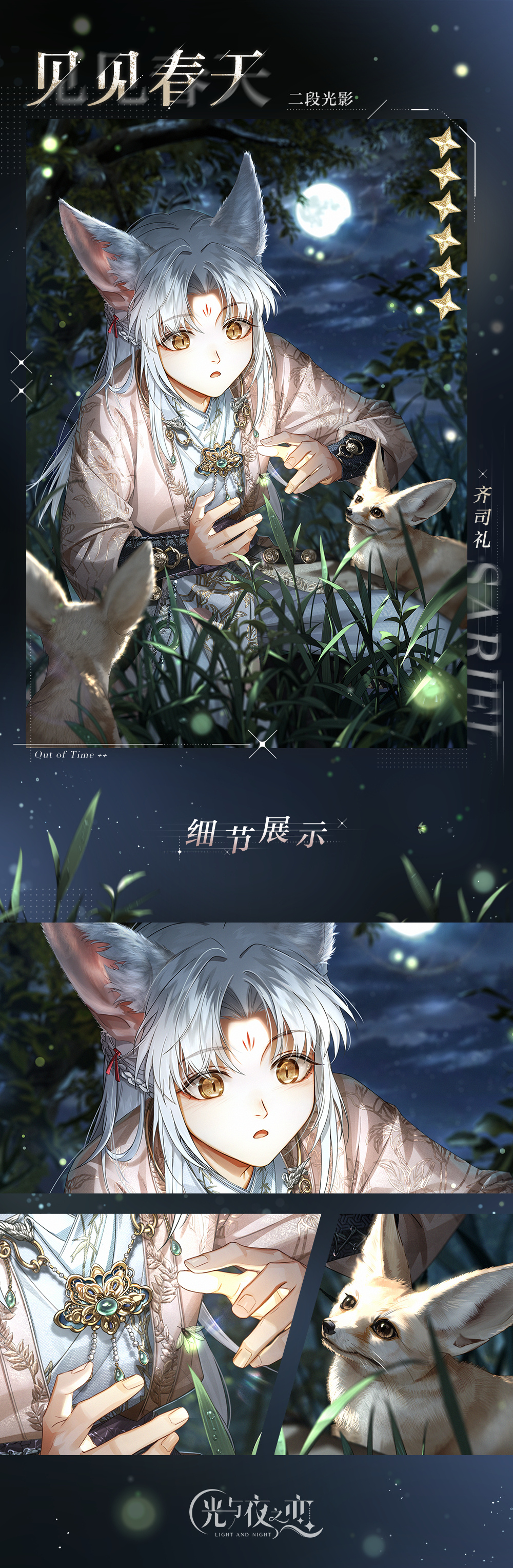 在限定收信 [岁月的缝隙・照幽] [岁月的缝隙・狭光]中,也有几率获得[6星]灵犀 齐司礼・见见春天,但不享受概率UP。