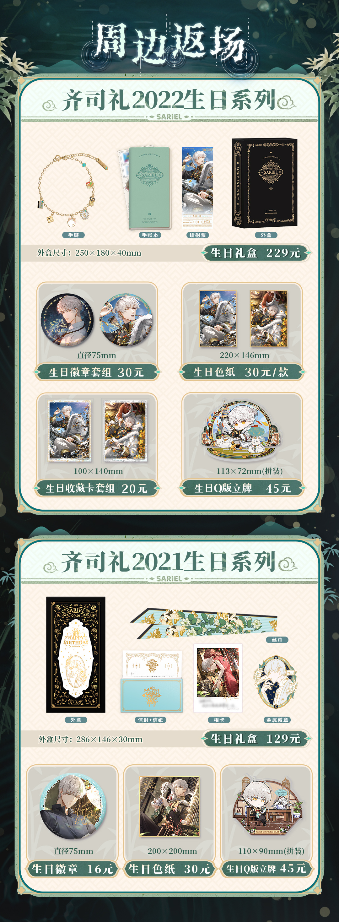 齐司礼2023生日系列限时周边新品,齐司礼2022和齐司礼2021生日系列现货返场产品即将同时开启!