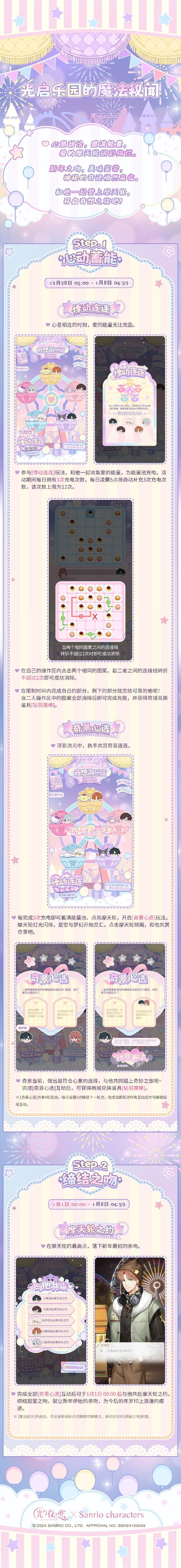 活动说明:梦幻漫游,夜启奇遇。和他一起登上摩天轮,开启奇想之旅,参与活动即可体验专属剧情,获得联动限定三星灵犀、联动限定头像框、限定称号、限定家具、小熊星座等丰富奖励。