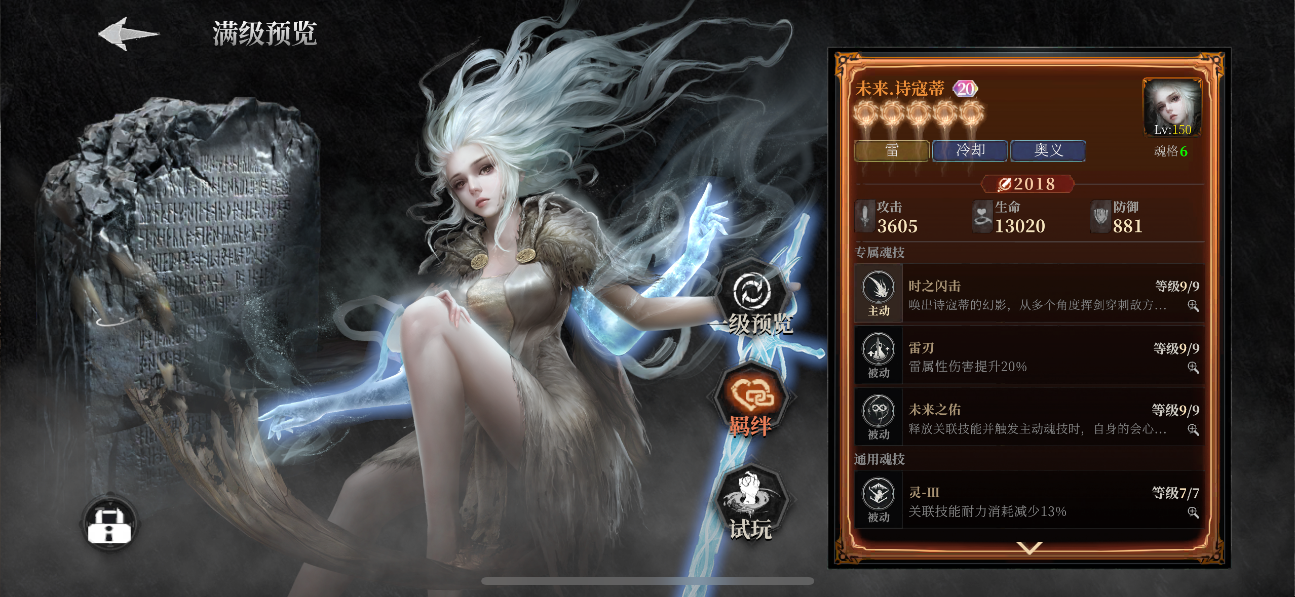 被动3:破招成功、切换武器或触发余魂时,有50%概率随机释放过去、现在、未来三女神之一的魂技1次。