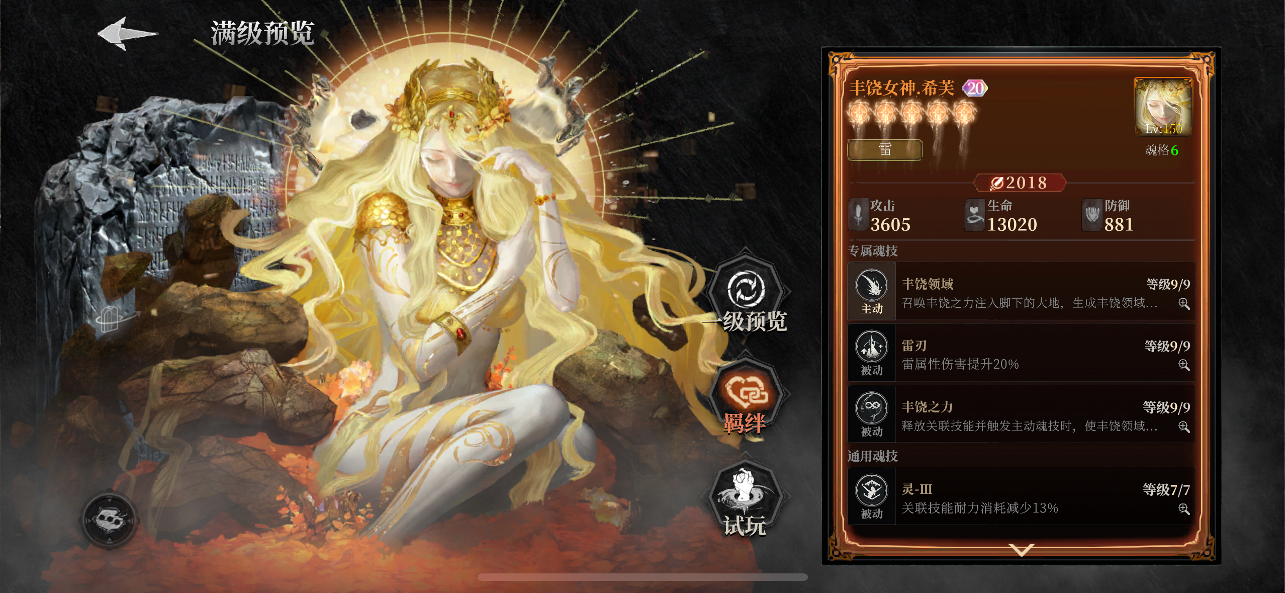 丰饶之力:释放关联技能并触发主动魂技时,使丰饶领域内范围内友方攻击力提升