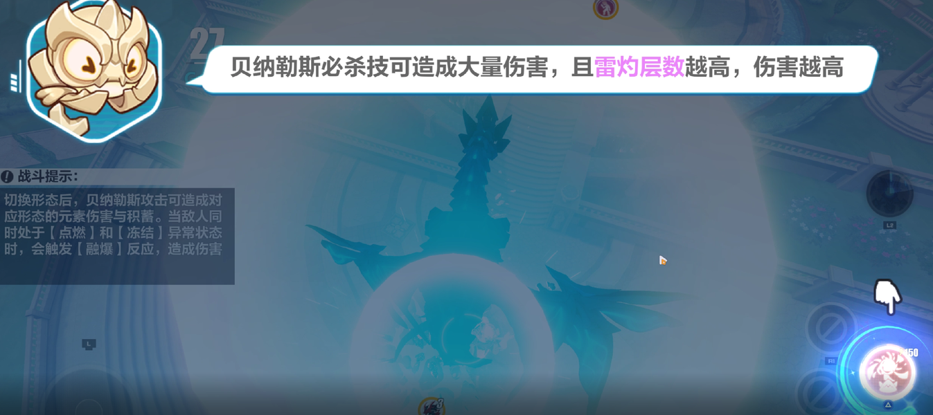 融爆:同时【点燃】和【冻结】敌人可以造成大量伤害并积累【雷灼】,【雷灼】层数越高必杀技伤害越高,所以尽可能同时打出【点燃】和【冻结】积累【雷灼】层数,释放必杀技造成爆炸伤害。