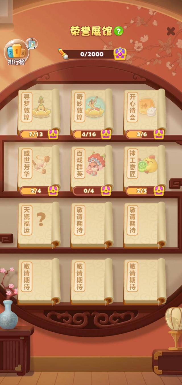 点击右下角“+”气泡进入荣誉展馆,一眼映入眼帘的便是全新界面设计,由原先的博物馆一转为收藏阁风格,国风韵味满满~