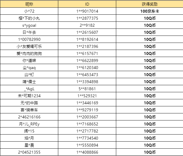 为了保护大家的个人隐私,以后开奖信息将由部分屏蔽的昵称+ID组成,小伙伴们可一定要仔细核对哦~