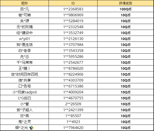 为了保护大家的个人隐私,以后开奖信息将由部分屏蔽的昵称+ID组成,小伙伴们可一定要仔细核对哦~