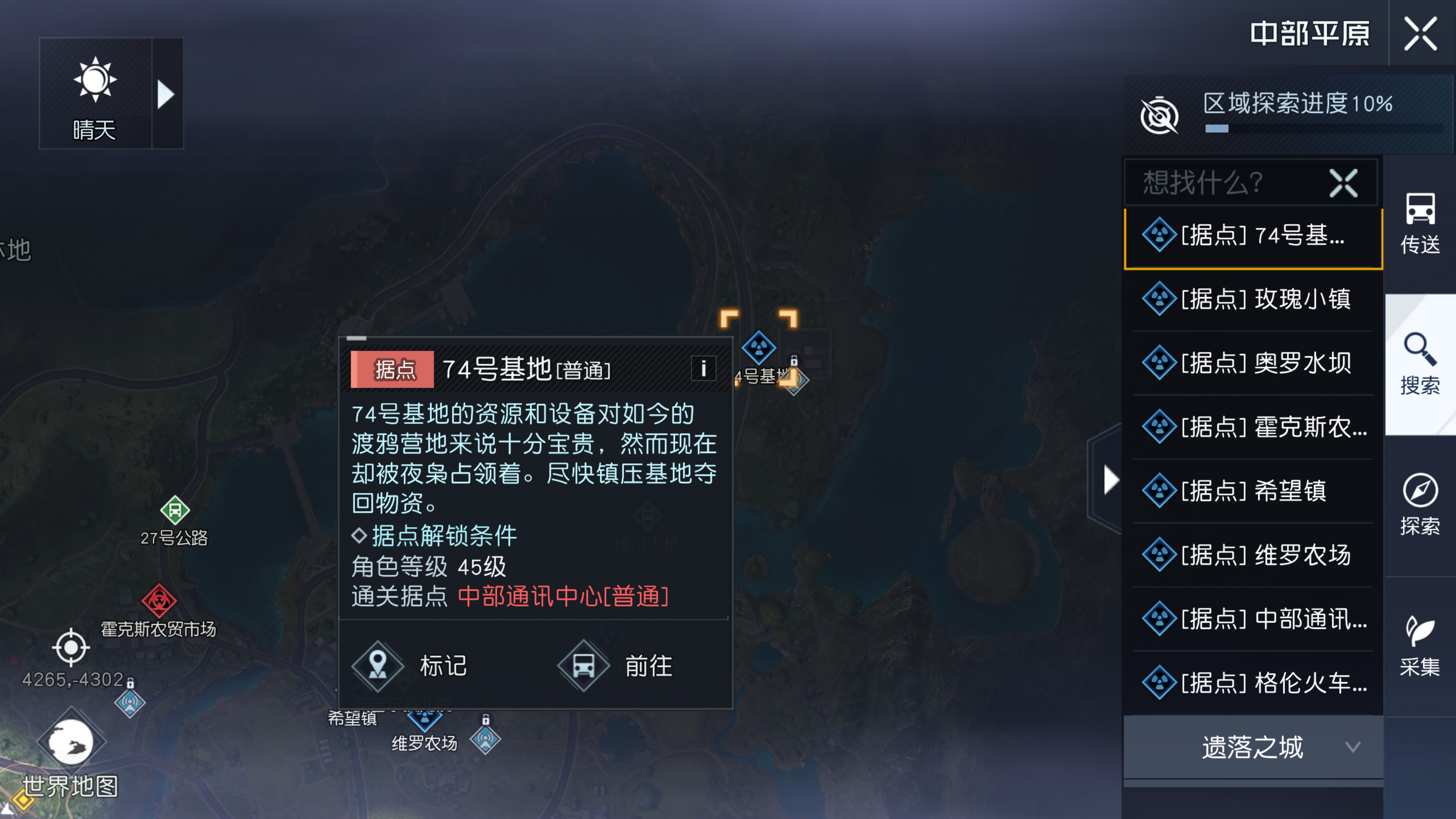 首先,据点挑战的地点和解锁等级不需要硬记,只需要打开渡鸦之路界面查询;在搜索中输入“据点”,也能快速定位所有内容哦。其次,据点挑战的奖励虽然只能领取一回,但挑战次数是没有上限的,而且,协助其他玩家再次完成挑战,还能获得援助积分奖励,所以如果玩家在满足等级需求的情况下无法独自通关,那么可以在各个频道寻找其他玩家一起挑战。当然,你也可以去帮助其他玩家进行挑战。