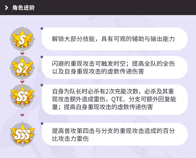 丽塔可作为辅助加入任意QTE队,开启星环爆发后可释放相应的特殊QTE。