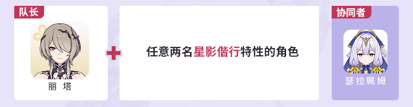 ①丽塔为队长时,开启星环爆发后可释放2次影侍助战,并进入7秒的影中轮舞状态,期间丽塔可直接释放普攻三至四击,普攻第四击后点按3次武器技可连续释放重现攻击。星环爆发期间,丽塔释放必杀后衔接重现攻击可立即退出星环爆发状态,并根据剩余星之环持续时间按比例回复星环能量