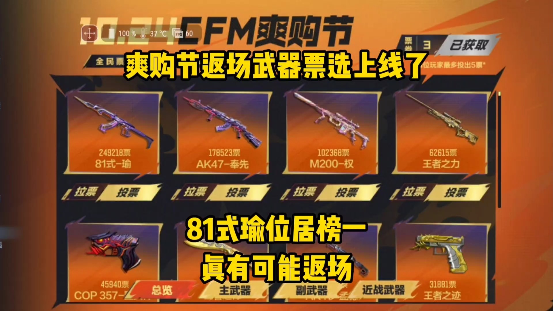 爽购节返场武器票选上线了,81式瑜位居榜一,真有可能要返场!
