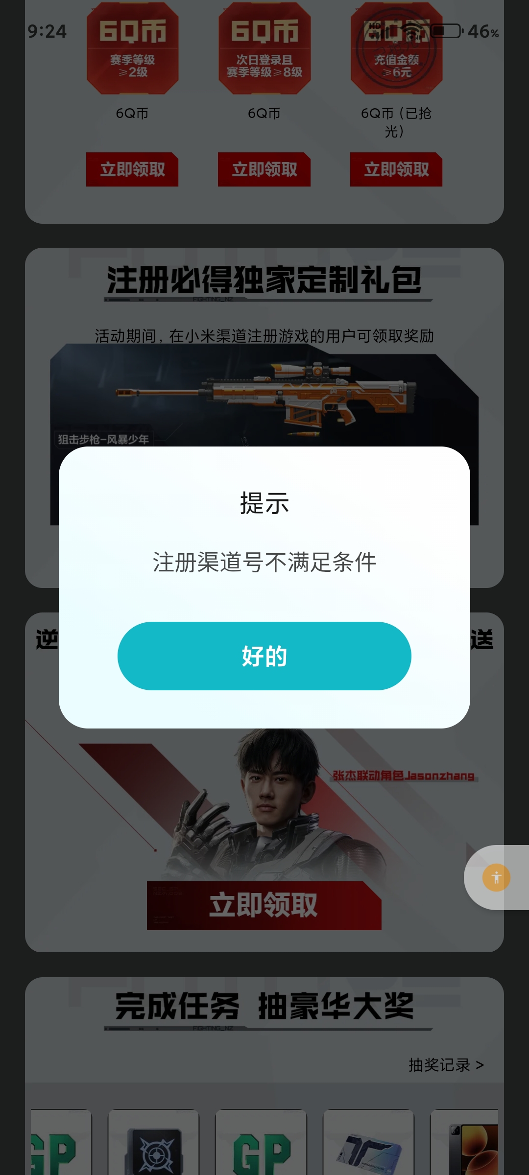 还是不满足条件。就是我就是手机小米的。渠道官方的。小米我的手机软件。渠道的游戏中心就在这儿下载的然后绑定都是绑定。正确的不满足条件,直接把我干沉默了,干懵逼了。...能不能在游戏中让玩家送皮肤别这么搞嘛,行不行?