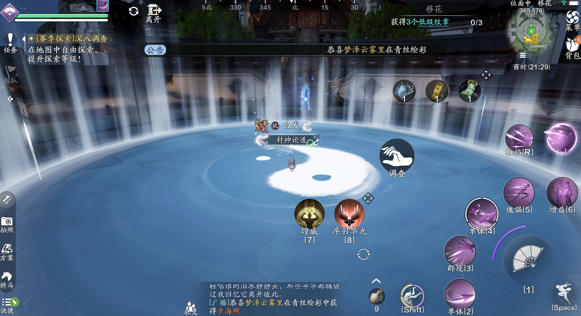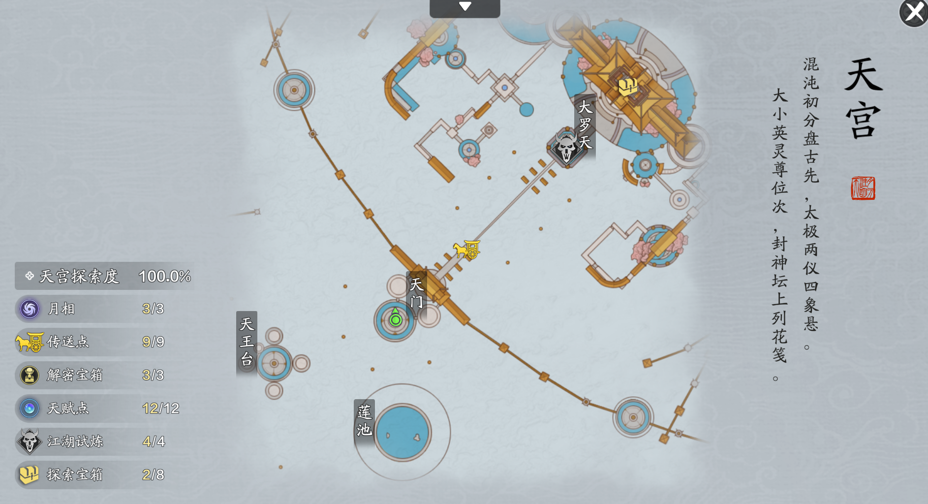 对话完成后,传送回移花传送点,在大阵中间点击调查即可进入天宫位面。