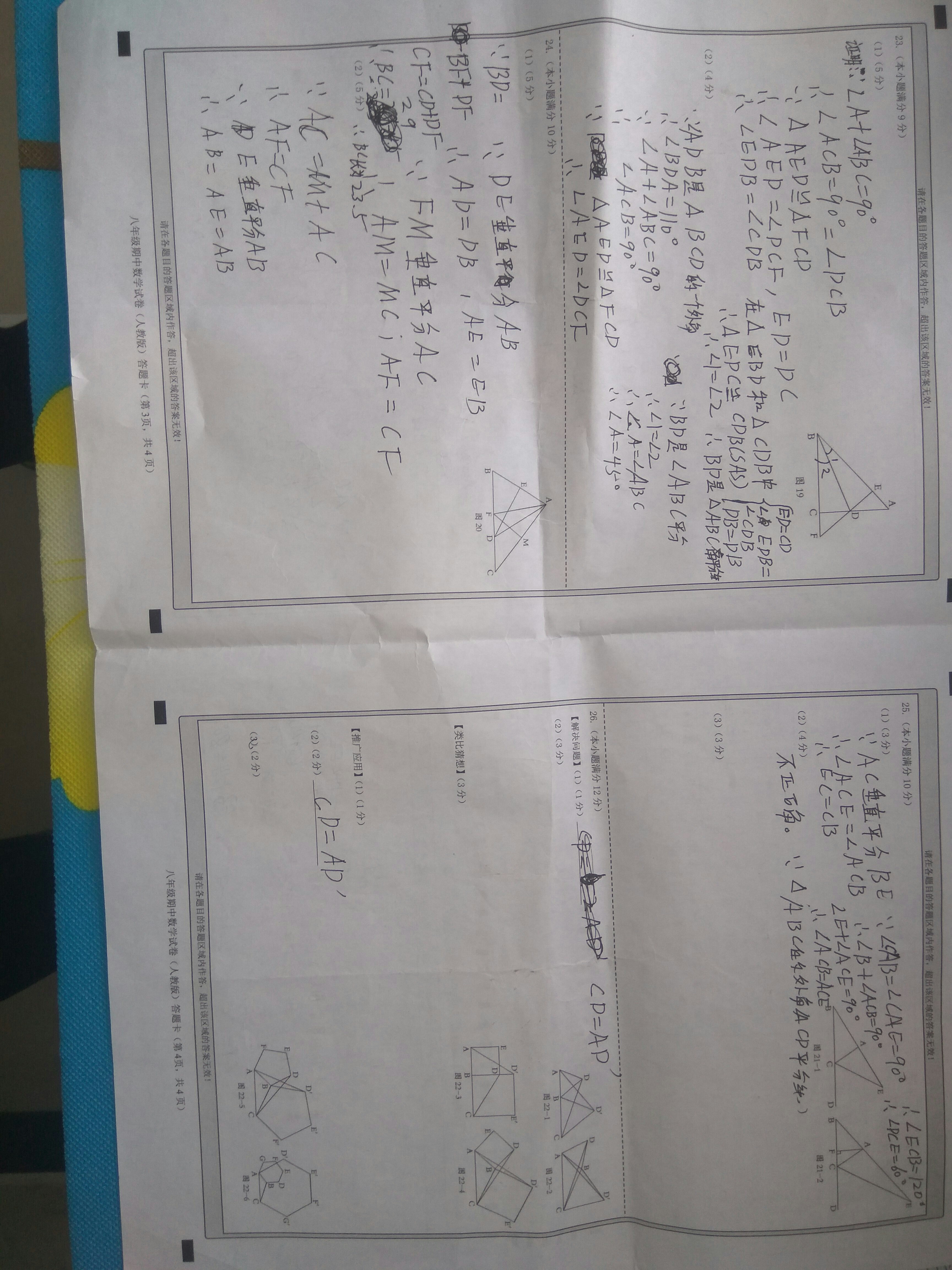 这是考的初二数学卷子,当时很多题都是证明的,73/120分